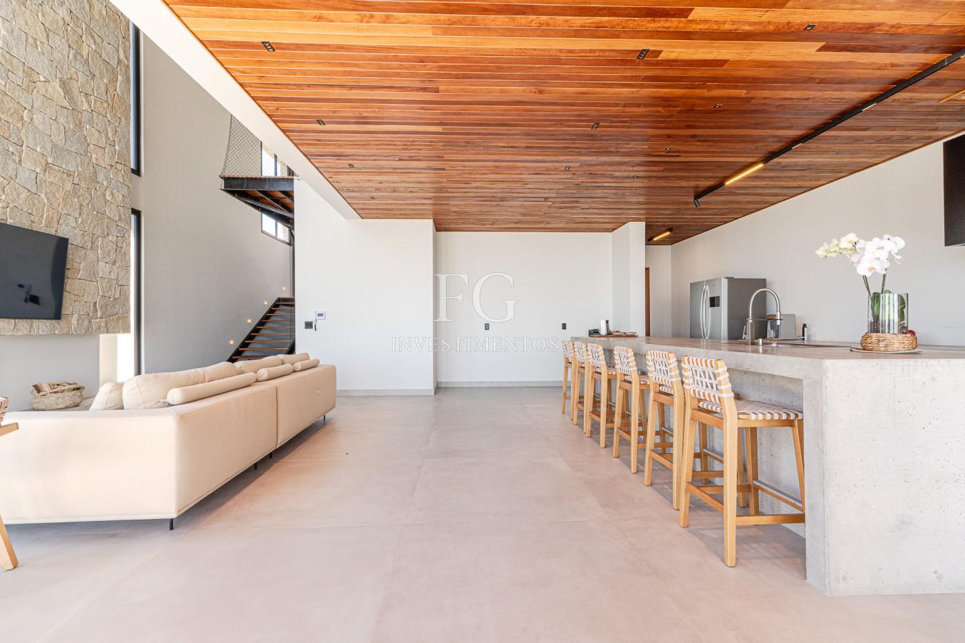 No seu interior, a planta inteligente distribui quatro dormitórios, sendo duas suítes com acabamento em porcelanato e metais de alto padrão, além de outros dois dormitórios que atendem a famílias que prezam por privacidade e versatilidade. São cinco banheiros bem equipados, que unem design contemporâneo e funcionalidade, integrados a uma sala ampla para dois ambientes, cozinha planejada e área de serviço estrategicamente posicionada. A residência está totalmente mobiliada, apresentando móveis de linhas limpas e materiais nobres que reforçam o conceito de lar pronto para morar. Na garagem, há duas vagas cobertas e mais duas descobertas, garantindo espaço e praticidade aos seus veículos.