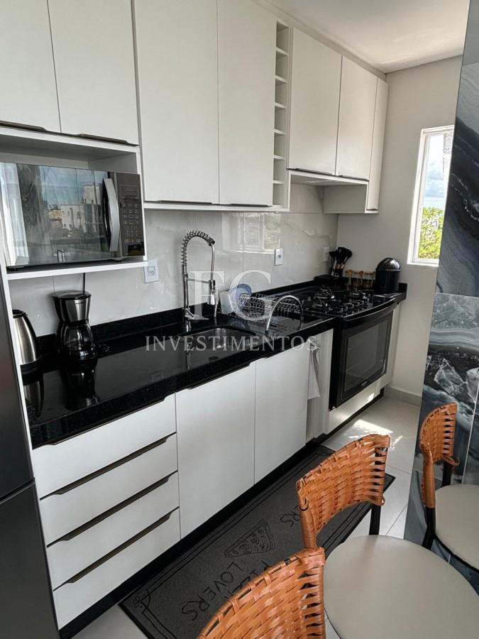 No interior, são três dormitórios bem distribuídos – sendo uma suíte privativa – e mais um banheiro social, todos com móveis planejados que conferem organização e elegância. A cozinha está completa, com armários, bancada e eletrodomésticos que acompanham a unidade, prontos para o dia a dia. A vaga de garagem exclusiva garante segurança e conforto, enquanto a planta inteligente permite aproveitar cada metro quadrado com total funcionalidade.
