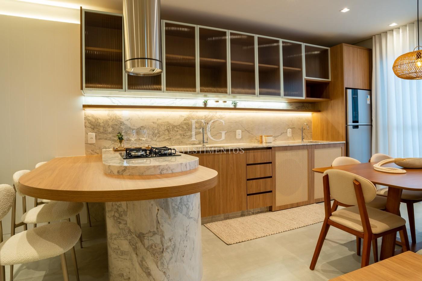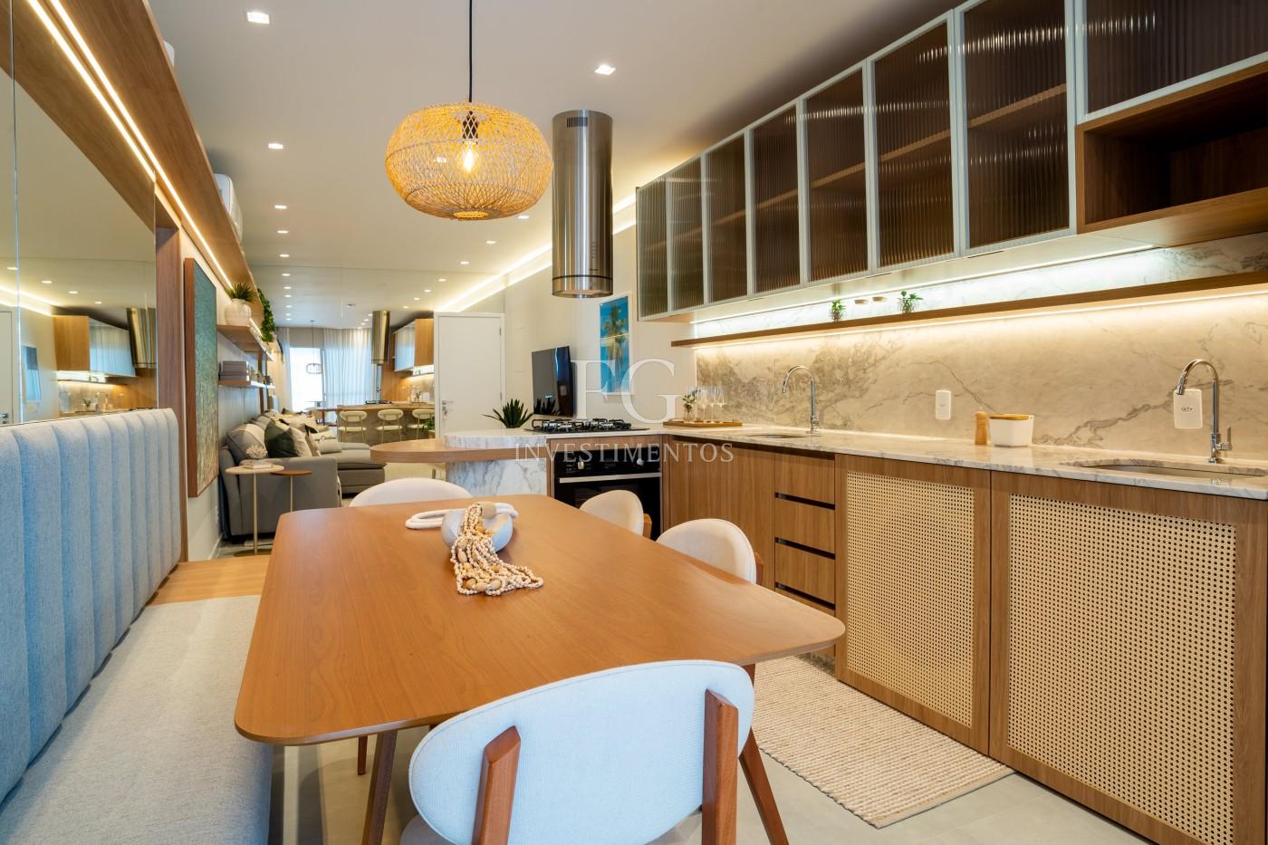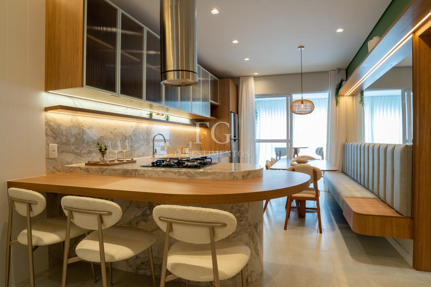 São 68m² bem distribuídos, com 2 dormitórios, living integrado e uma cozinha gourmet pensada para receber com charme e praticidade.