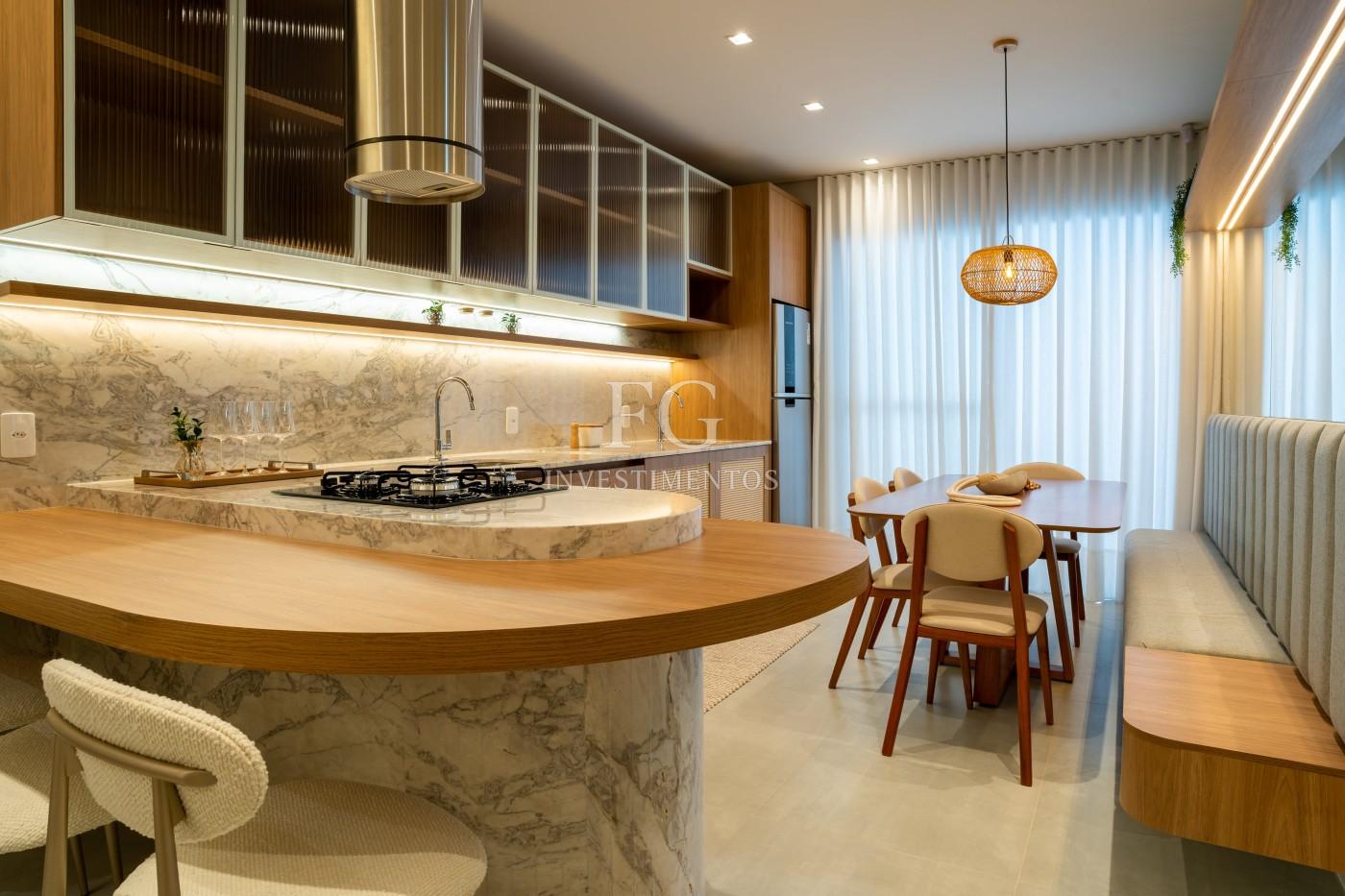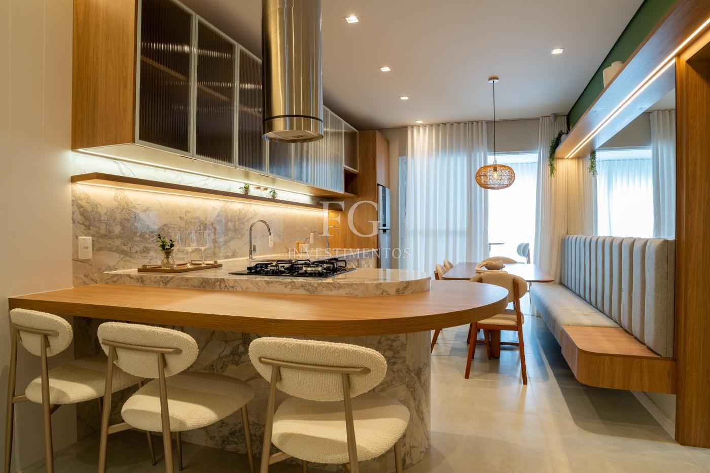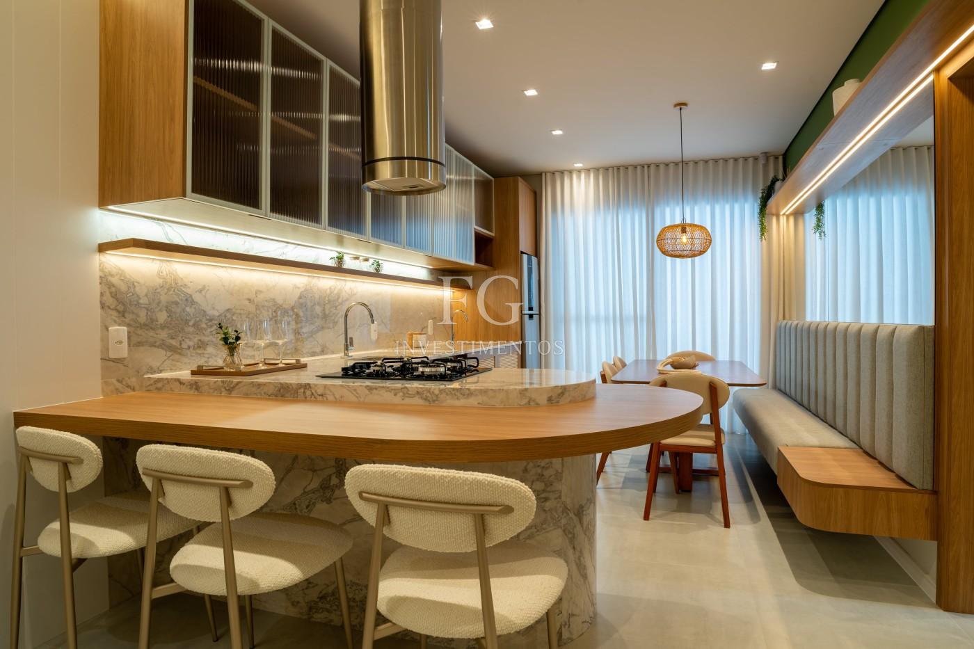 São 68m² bem distribuídos, com 2 dormitórios, living integrado e uma cozinha gourmet pensada para receber com charme e praticidade.